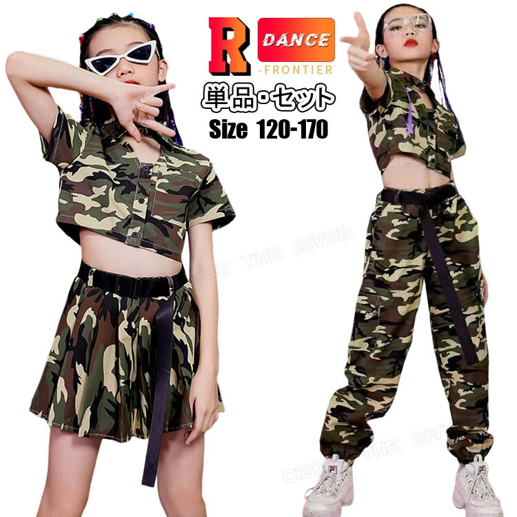 迷彩 キッズ ダンス衣装 へそ出し トップス パンツ スカート 女の子 かっこいい セットアップ 韓国 k-pop衣装 ヒップホップ 迷彩スカート ショート丈 HIPHOP ジャズダンス 迷彩トップス