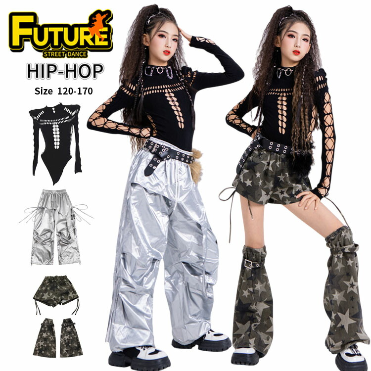 星柄 パンツ k-pop 衣装 キッズ ダンス セットアップ ブラック トップス カーキグリーン カーゴパンツ 女の子 練習着 ヒップホップ カッコイイ 韓国 チアダンス衣装 子供 ジ ガールズ
