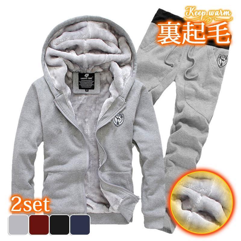 ジャージセットアップ メンズ 上下セット スエット 裏起毛 フード付き 暖かい 冬 パーカー ジップアップ スポーツ 防寒 トレーナー