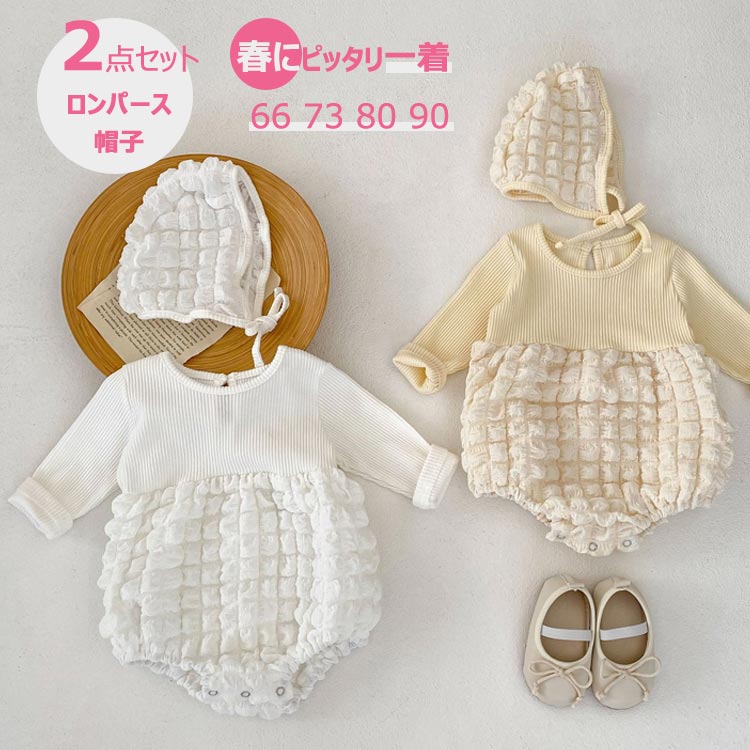 2点セット ベビー ロンパース 写真撮影 ロンパースドレス 長袖 セレモニー 春 秋 可愛い 出産祝い 66 73 80 90 ベビー服 カバーオール 女の子 オールインワン 韓国フ 赤ちゃん