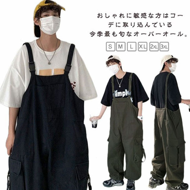 オーバーオール サロペット メンズ レディース 大きいサイズ 無地 オールインワン 男性 作業着 つなぎ パンツ サルエルパンツ ストリート系 カジュアル ヒップホップ カッコイイ リッラクス 作業服