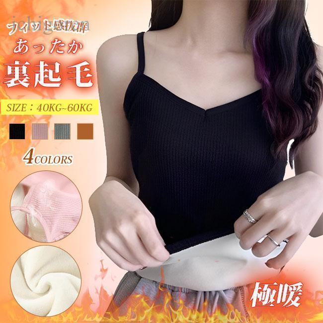 裏起毛 キャミソール レディース フィット リブニット 伸縮性 ニットキャミソール 肌着 インナー 無地 防寒 暖かい 極暖インナー 細身