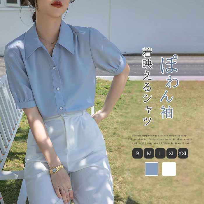 シャツ レディース 夏 シャツブラウス トップス 半袖 レディースシャツー 半袖トップス 夏シャツ 無地 エレガント カジュアル パフスリーブ パフ袖 ギャザー 薄手 涼しい 大人可愛い お トレンド