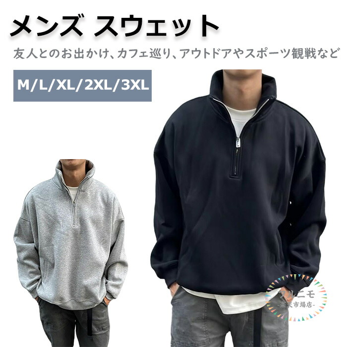 トップス スウェット メンズ ハーフジップ プルオーバー ハイネック トレーナー 無地 立ち襟 ゆったり シンプル アウトドア ユニセックス オーバーサイズ M L 春秋冬