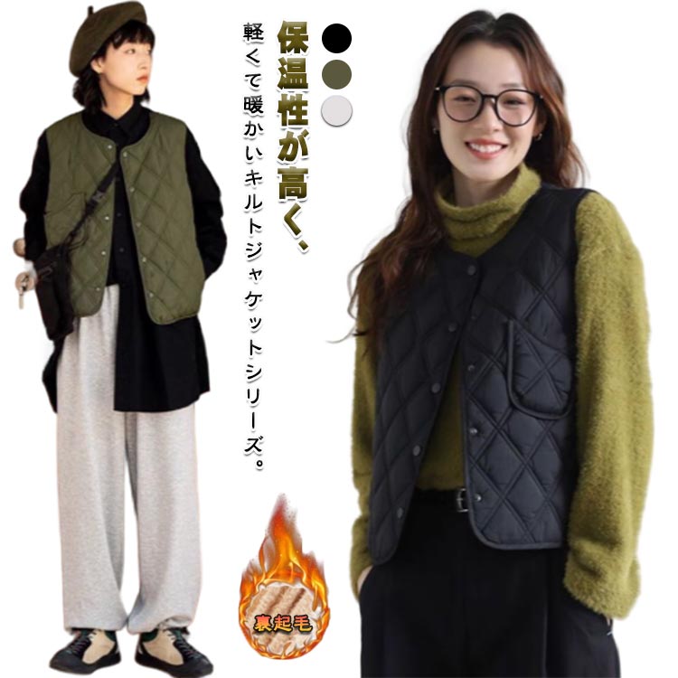 裏起毛 ベスト レディース 冬 キルティング 暖かい アウター インナーベスト ボアベスト トップス ライトアウター キルティングベスト 防寒 保温 冷え取り 羽織り 前開き 秋 秋冬 中綿 あったか