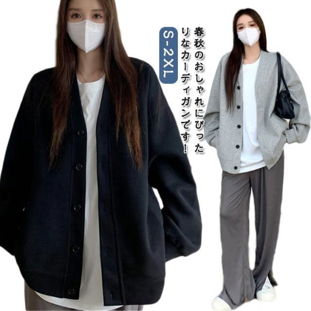 スウェットカーディガン パーカー レディース トップス Vネック カーディガン 長袖 アウター おしゃれ かわいい 無地 スウェットトレーナー 春 秋 冬 羽織り 体型カバー 大きいサイズ カーデ