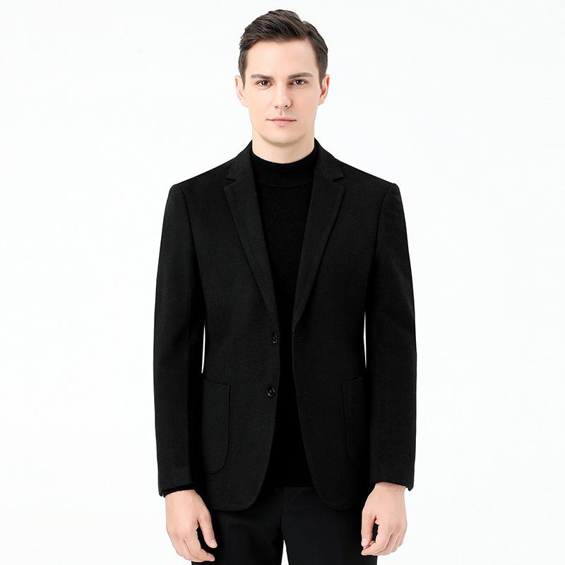 ジャケット メンズ 高級感 ウール 中厚手 カジュアル ビジネス 大人向け 秋冬 ブラック ポリエステル裏地 レギュラー丈 長袖 シングルブレスト