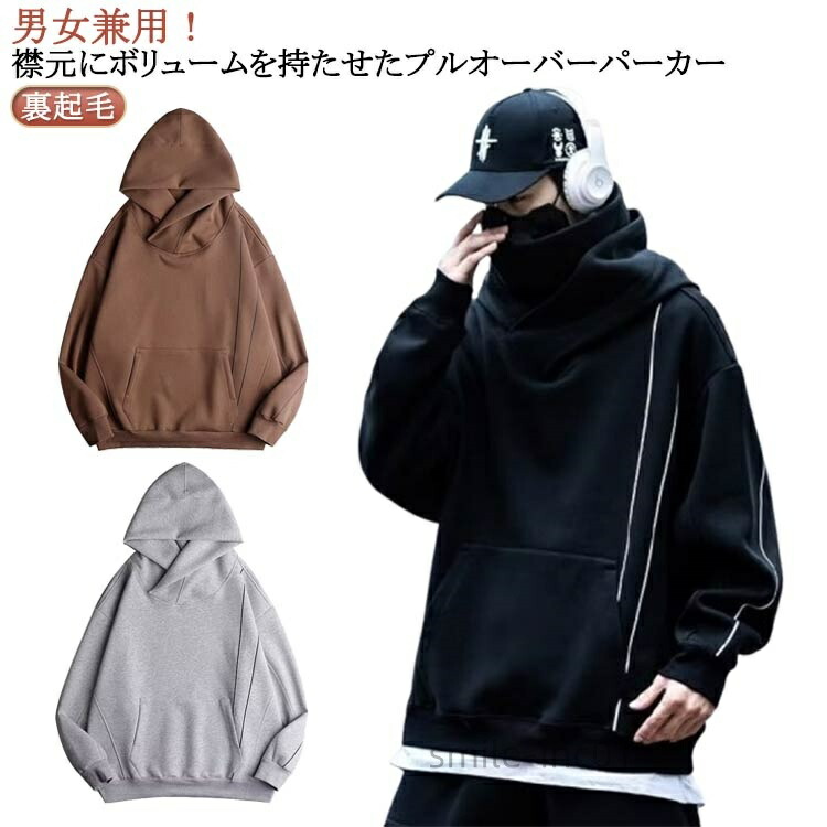 送料無料 裏起毛 パーカー メンズ レディース ボリュームネック