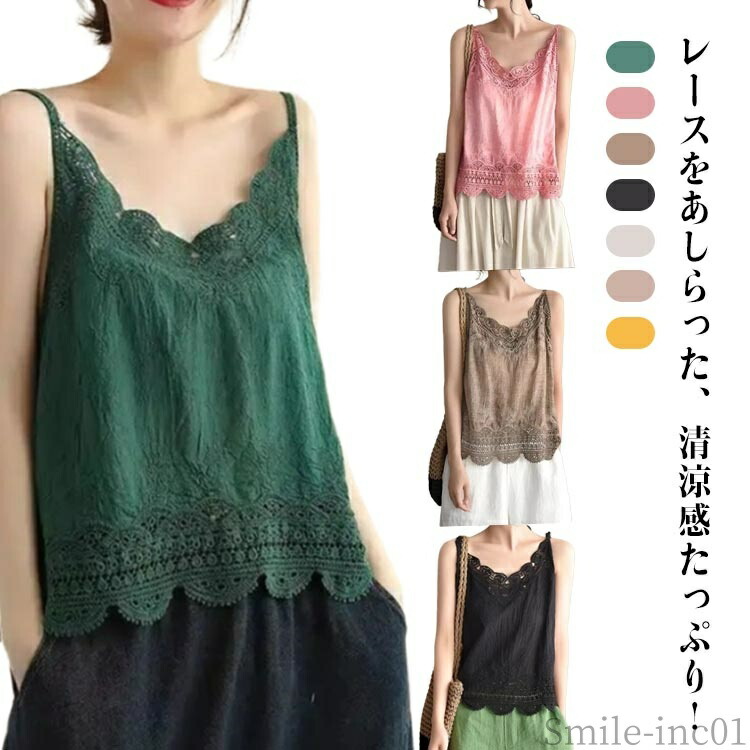 レースキャミソール 薄手 きれいめ 可愛い ネック 重ね着 綿 インナー ゆったり