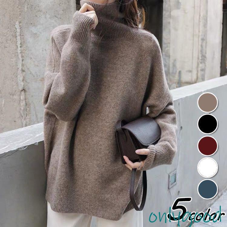 ニットセーター ニット セーター レディース 秋冬 40代 長袖 プルオーバー 無地 ハイネック ロングニット ゆったり おしゃれ 冬 防寒 厚手