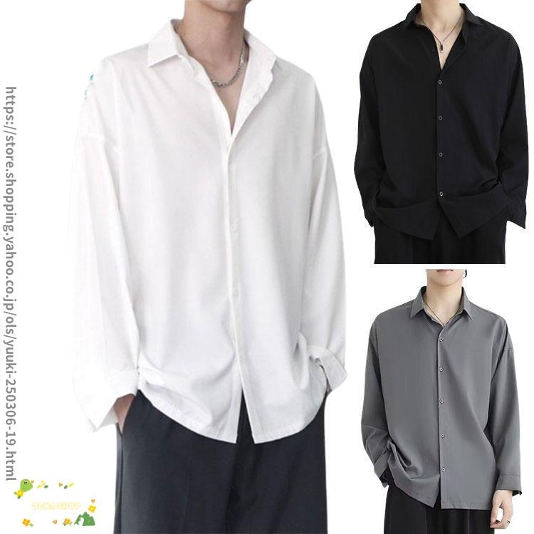 シャツ 接触冷感 メンズ 長袖 カジュアル 半袖 ビジネス 夏 アイスシルク 前開き 無地 白 黒 グレー ホワイト ブラック 黒