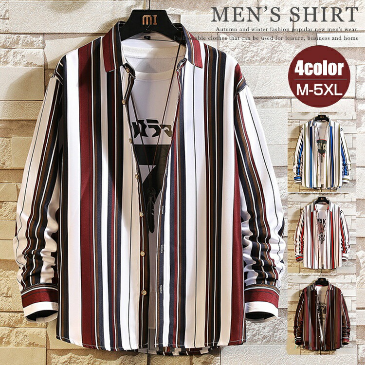 ストライプ シャツ メンズ カジュアルシャツ 長袖 ストライプ柄 秋物 おしゃれ 40代 メンズファッション ワイシャツ 大きいサイズ