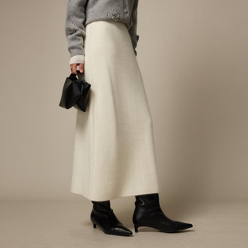 スカート レディース ラクーン ウール 羊毛 ニット タイトスカート 秋冬 冬物 暖かい 厚手 無地 ストレッチ エレガント 上品 ミディ丈