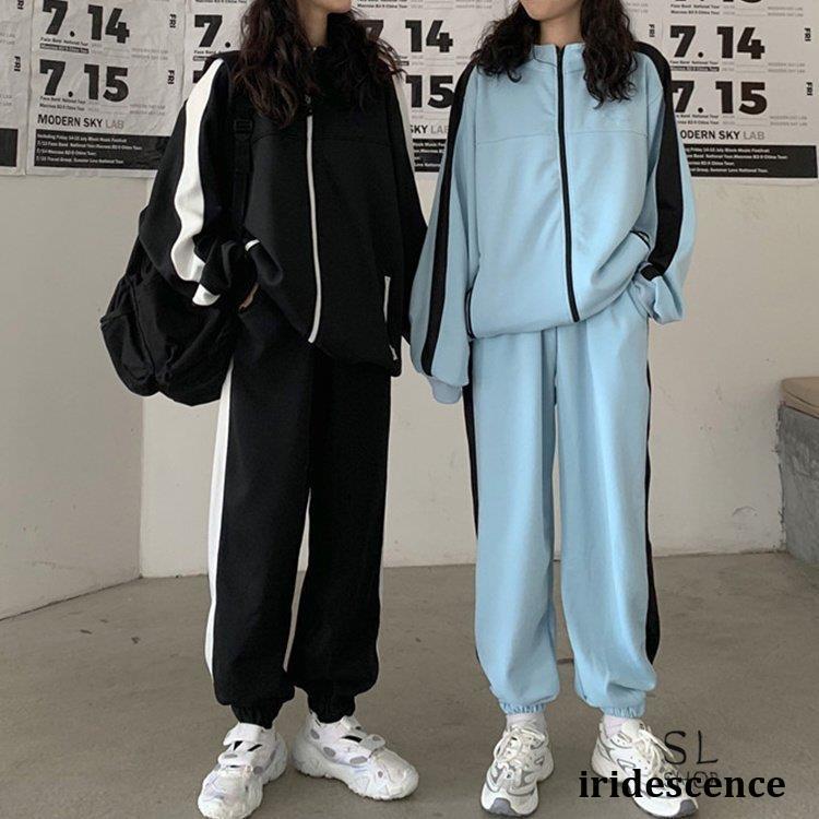 上下セット レディース ジャージ セットアップ ライン 長袖 ジップアップ ジャージパンツ 部屋着 カジュアル 秋 2点セット