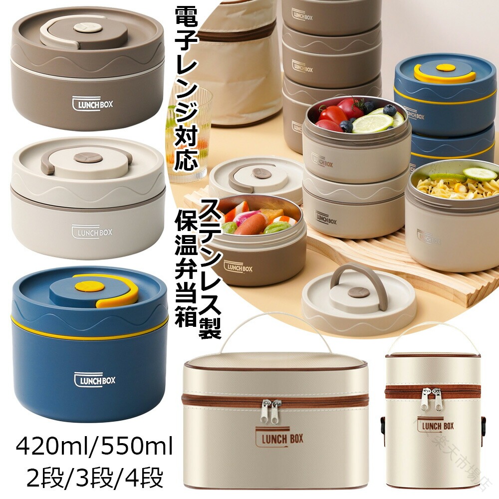 保温弁当箱 保温バッグ付き 断熱弁当箱セット 3点 4点 5点セット ステンレス製 多層構造 保温ランチジャー 漏れ防止真空断熱スープランチセット ランチボックス 大容量 2段 3 超高効率保温3時間