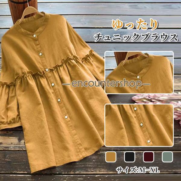 ブラウス レディース 長袖 秋 おしゃれ チュニック 無地 ゆったり 大きめ フリル カジュアル 通勤 お洒落 40代 50代 60代 30代
