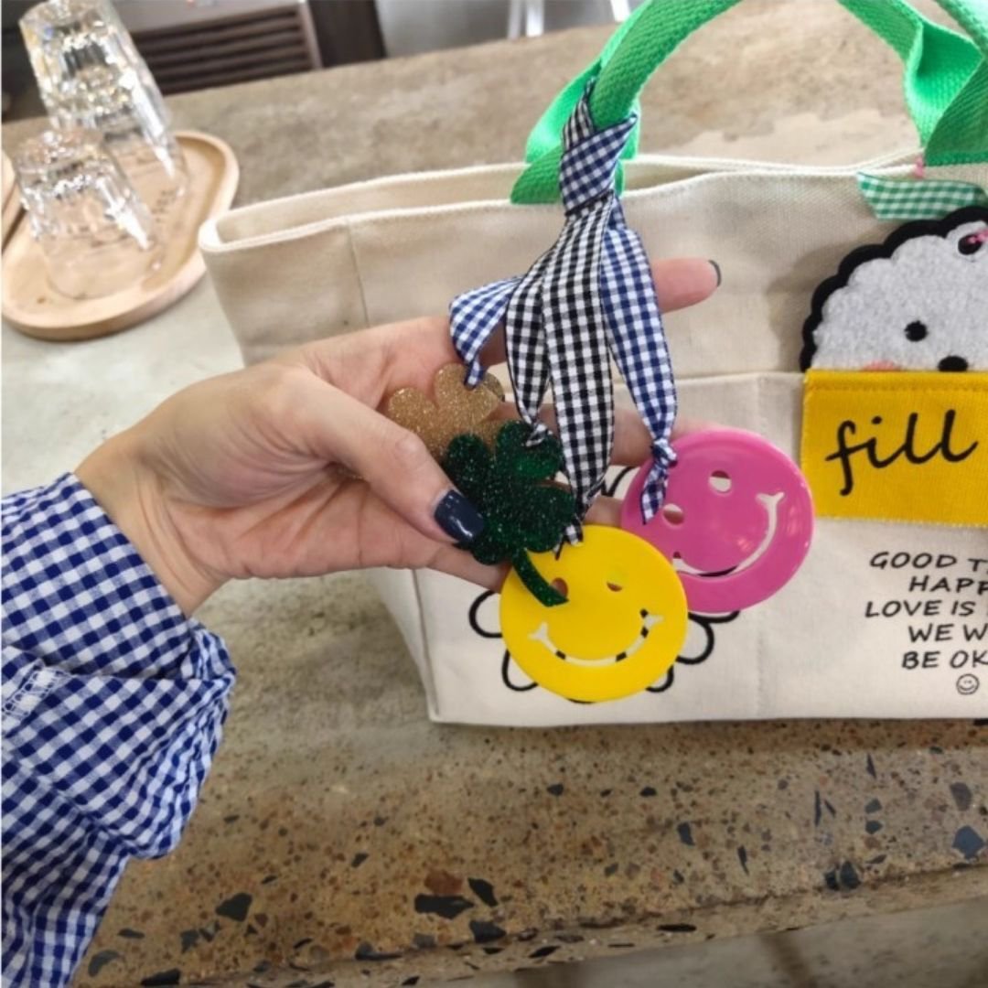 バッグチャーム 3点セット にこちゃんバッグチャーム わんちゃんチャーム スマイル ドック チェック紐 かわいい キーホルダー アクセサリー おしゃれ お揃い ペア プレゼント 飾り