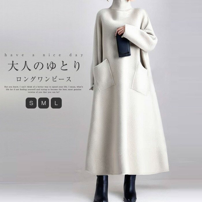 ワンピース ロング レディース ワンピ ロング丈 ハイネック タートルネック aライン Aライン 無地 秋 冬 長袖 体型カバー 大きいサイズ ゆったり きれいめ お洒落 シンプル