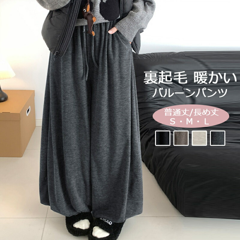 バルーンパンツ 裏起毛 ワイドパンツ 防寒 あったか 秋冬 レディース ボトムス ワイド パンツ ロングパンツ 長ズボン 体型カバー スウェットパンツ カジュアル 柔らかい