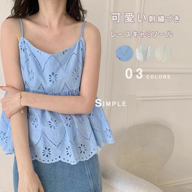 キャミソール ビスチェ レース レディース 春夏 レースキャミソール トップス キャミ カップなし シャツ ノースリーブ ベスト 刺繍 透かし編み 綿 コットン コーデ
