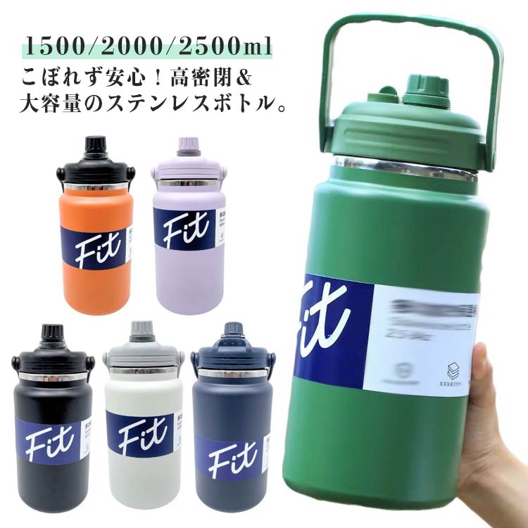 水筒 大容量 1500 2000 2500 保冷 スポーツジャグ ステンレス 真空二重構造 直飲み 水筒 ハンドル付 大人 こども 子供 スポーツ キャンプやでの氷の持ち運び