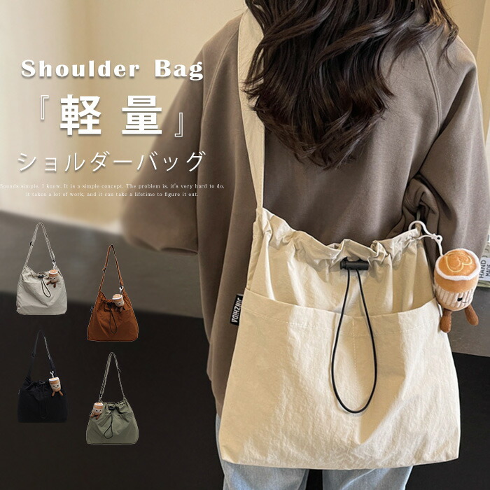 ショルダーバッグ レディース 斜め掛けバック ナイロンバック かばん 巾着バッグ ドローストリング 鞄 トートバッグ カバン 肩掛けバッグ キレイめ インスタ映え 軽い 軽量 シンプル カジュアル