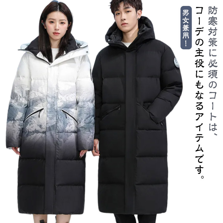 ダウンジャケット 防寒 アウター 秋冬 厚手 スタッフコート ロングコート ダウンコート 無地 ロング丈 ベンチコート フード付き 軽量 ホワイト ブラック