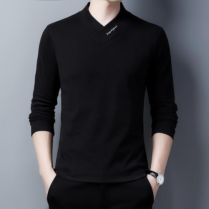 Tシャツ メンズ 男性用 Vネック 長袖 トップス カットソー スリム 厚手 秋冬 普段使いカットソー 無地
