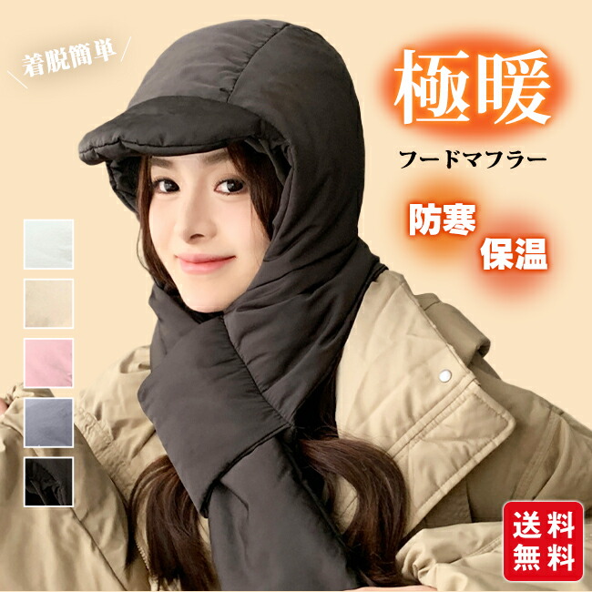 フードマフラー 中綿 フード付き 温活 防寒 レディース 保温 あったか かわいい ネックウォーマー 寒さ対策 暖かい 軽い 帽子 耳あて 冬 洗える おしゃれ 通勤 柔らかい