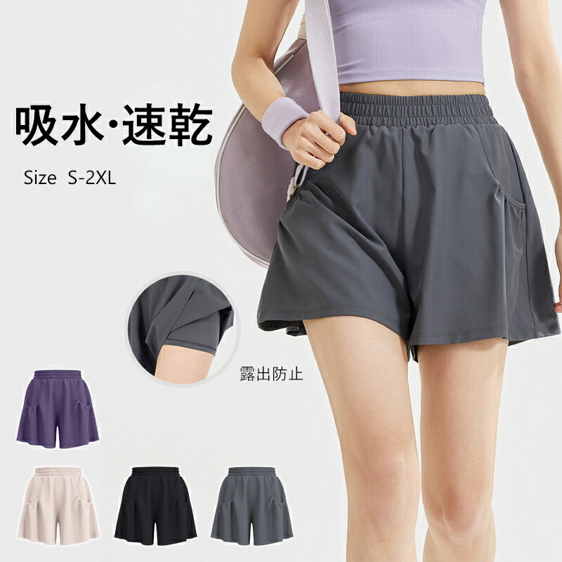 ヨガパンツ レディース インナー付きショートパンツ 一体型 切りっぱなし デザイン シンプル 薄手 トレーニングウェア フィットネスウェア ヨガウェア パンツ おしゃれ かわいい 無地 エクササイズ