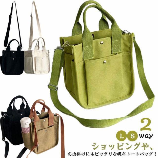 キャンバス 2way ショルダーバッグ 帆布 頑丈 小さめ 斜めかけ トートバッグ ミニトートバッグ マチ広 軽量 マザーズバッ 大きめ