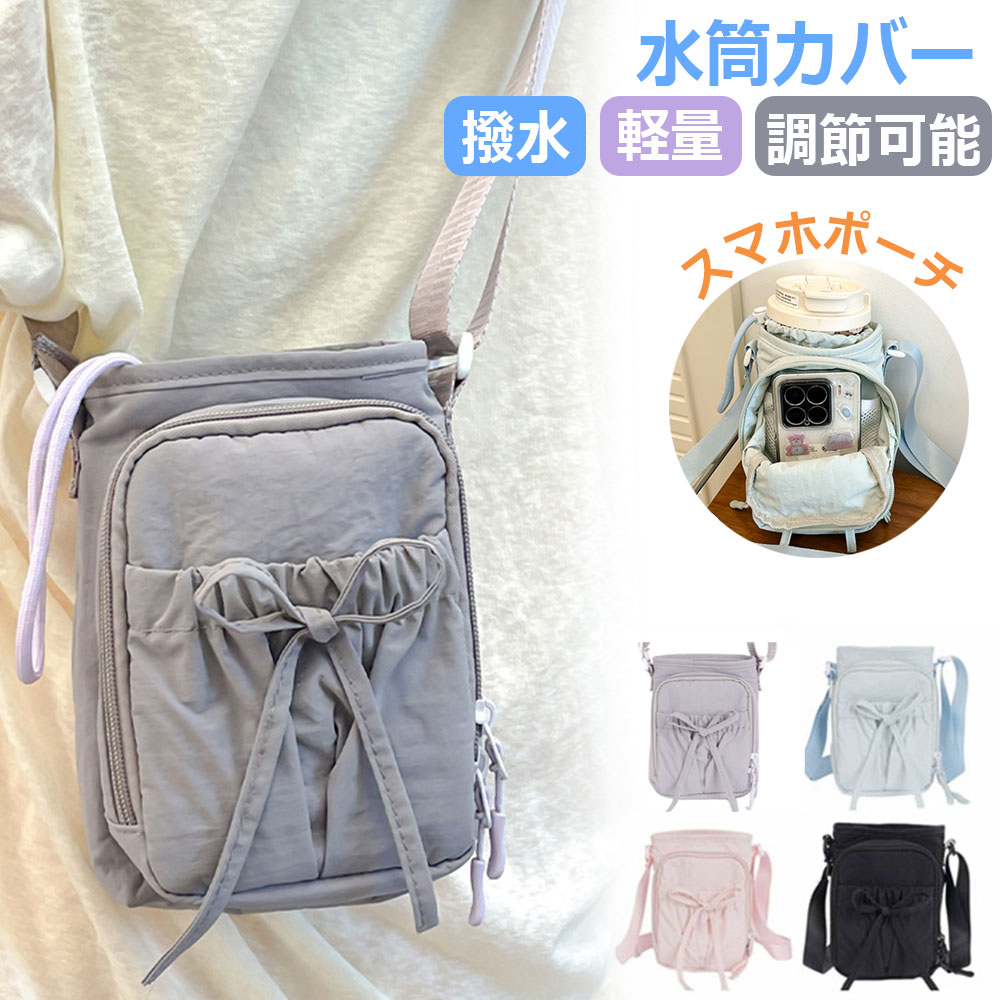 水筒カバー ショルダー 肩掛け ボトルホルダー スマホポーチ 大容量 水筒ケース 子供 大人 ボトルカバー ポケット付き 収納 水筒ポーチ 斜め掛け 撥水 長さ調節可 持ち運び便 ペットボトルホルダー