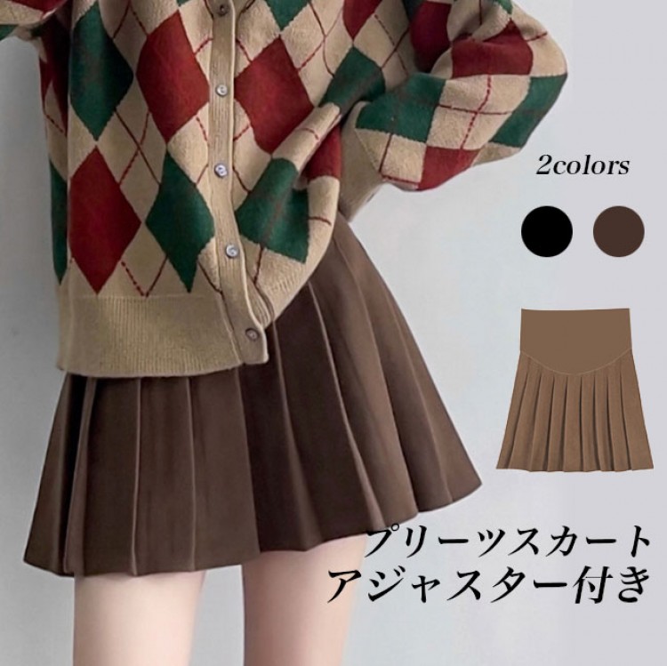 マタニティ プリーツスカート ショート レディース ミニスカ 妊婦 ショートスカート マタニティスカート アジャスター付き 産後 プリーツ スカート お洒落
