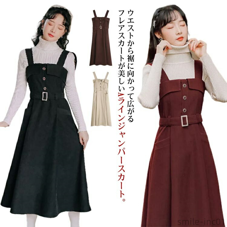 大人 オールインワン キャミワンピース キャミワンピ 冬 秋 春 秋冬 春秋 Aライン ジャンパースカート レディース スカート