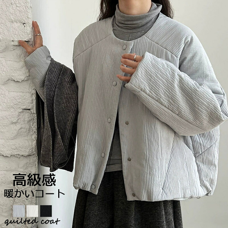 キルティングジャケット 冬 キルトコート 防寒 保温 中綿ダウン 暖かい 軽量 中綿ジャケット 中綿コート 可愛い 無地 あったか 暖かい オフホワイト ブラック グレー 通勤 通学